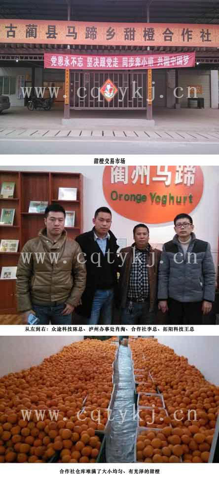 2013年12月31日,重庆拓阳科技有限公司联合重庆众途科技有限公司与四川省泸州市古蔺县马蹄乡甜橙合作社达成了战略合作联盟。