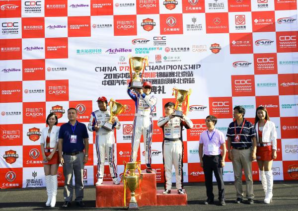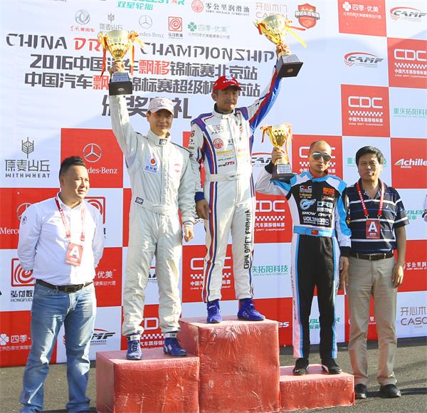 CDC新设立的组别——超级组,则由零公里润滑油CDF车队的张盛钧获得冠军,来自杭州DRS飘移车队的王祺获得亚军,季军则由来自双星轮胎飘移车队的日本车手冈村和义获得!